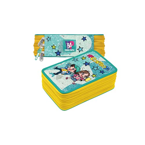 Me Contro Te astuccio scuola 3 zip completo scuola 2021 GIALLO-VERDE ACQUA con glitter LUI' E SOFI'