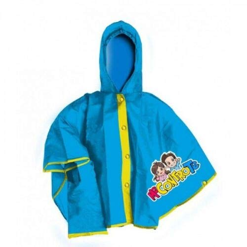 Me Contro Te Poncho Pioggia Bimba Mantella Impermeabile con Cappuccio tg. 4/5 Anni - Azzurro