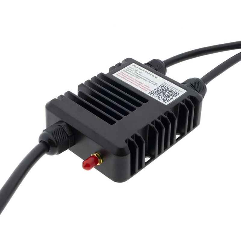 Controller per l'illuminazione LED RGB e connessione bluetooth all'app per il controllo tramite smartphone. Valido per apparecchi LED RGB 12/24VDC e massimo 6A. Impermeabile con classificazione IP68. 12/24VDC Max 6A Max 360W@12V Max 720W@24V IP68 Bluetooth