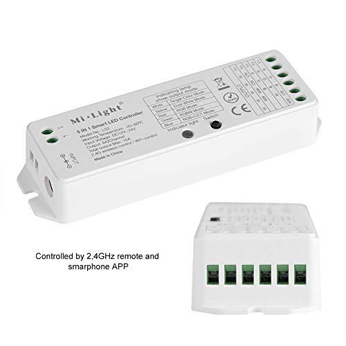 Controller LED 5 in 1, controller Smart Strip a LED per colore singolo/CCT/RGB/RGBW/RGB + CCT controllato da APP 2,4 GHz a distanza/Smart Phone