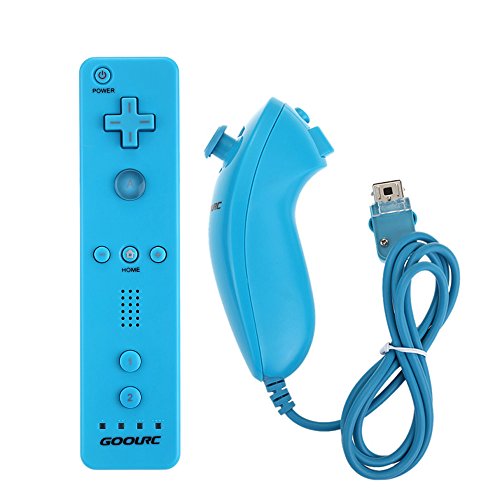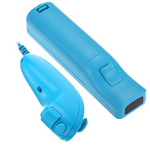 AMO - Controller telecomando e Nunchuck per Wii, con rivestimento in silicone, colore: Blu