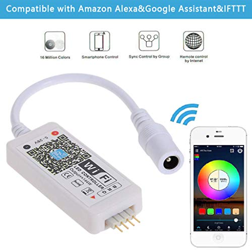 Controller RGB LED Wifi, adatto per Alexa/Google Home, controllo vocale, app controllata, per strisce LED RGB con 16 milioni di colori, 20 modalità dinamiche, cambio di colore attivato (A)