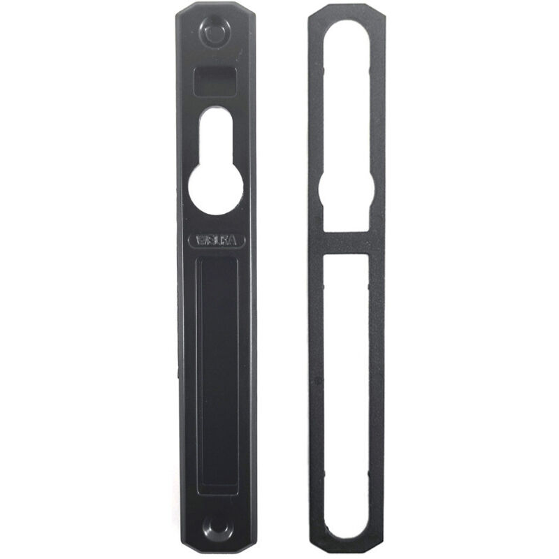 Contropiastra in zama per serrature di serramenti scorrevoli entrata 19 mm su profili in alluminio. Finitura verniciato nero. Accessori in dotazione: Distanziale per placca Art. 851.01.00.0 Piastrine e viti di fissaggio Adatta a modelli Welka 201- 205. Misure come da immagini.