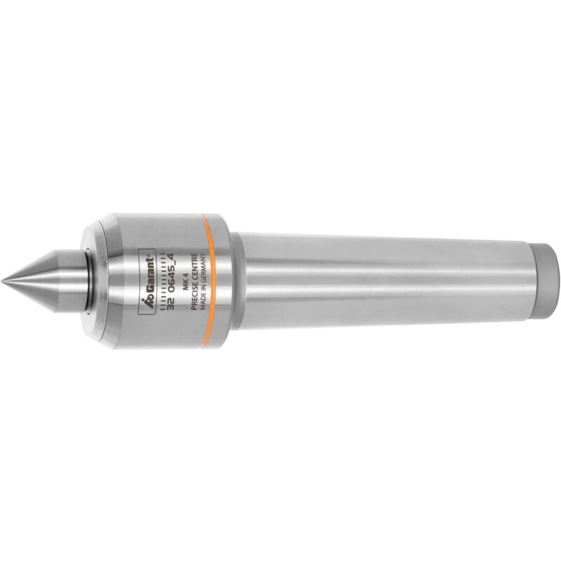 Esecuzione leggera con struttura slim. * Cuscinetto volvente con elevata precisione di rotazione concentrica. * Senza manutenzione. * Una guarnizione speciale impedisce allo sporco e al liquido lubrorefrigerante di penetrare all'interno. * Codolo CM temprato e rettificato. Angolo cuspide 60°.: Le punte pilota vengono utilizzate principalmente nei torni con l'obiettivo di stabilizzare i pezzi lunghi e sottili, più soggetti alla flessione o all'oscillazione incontrollata causate dalle forze generate durante la lavorazione. La punta pilota viene fissata con un cono Morse. Il pezzo viene serrato nel mandrino, a cui segue l'inserimento di una svasatura con una punta da centro. Una volta effettuato il cambio del pezzo, viene fissata la punta pilota. Uso: Principalmente per la lavorazione di minuterie e microcomponenti su torni piccoli e grandi. Dati tecnici Tipo di prodotto Cuspide Numero massimo giri, min-1 6.000 Cono Morse CM2 ⌀ Alloggiamento D, mm 32 Lunghezza utile B, mm 64 ⌀ Punta