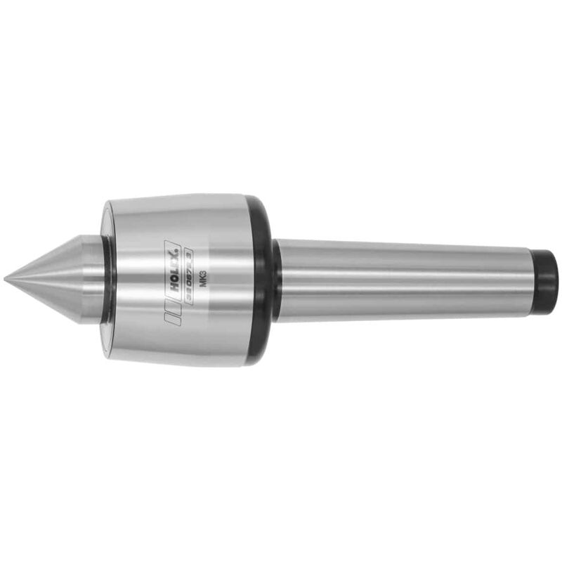 Corpo e cuspide temprati. * Cuspide indurita, possibilità di riaffilatura multipla. * Cuscinetto volvente con elevata precisione di rotazione concentrica. * Senza manutenzione. * Una guarnizione speciale impedisce allo sporco e al liquido lubrorefrigerante di penetrare all'interno. * Angolo cuspide 60°.: Le punte pilota vengono utilizzate principalmente nei torni con l'obiettivo di stabilizzare i pezzi lunghi e sottili, più soggetti alla flessione o all'oscillazione incontrollata causate dalle forze generate durante la lavorazione. La punta pilota viene fissata con un cono Morse. Il pezzo viene serrato nel mandrino, a cui segue l'inserimento di una svasatura con una punta da centro. Una volta effettuato il cambio del pezzo, viene fissata la punta pilota. Uso: Per tutti i tipi di torni, per la sgrossatura e la tornitura di precisione. Dati tecnici Tipo di prodotto Cuspide Numero massimo giri, min-1 5.000 Cono Morse MK3 ⌀ Alloggiamento D, mm 50 Lunghezza utile B, mm 79 ⌀ Punta