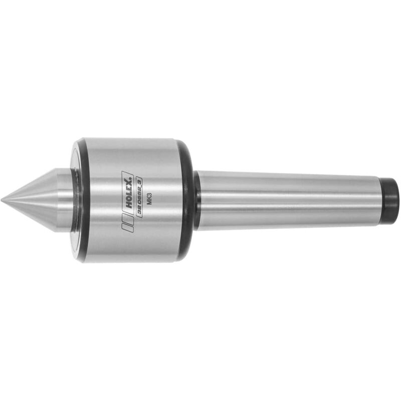 Angolo di affilatura 60°. * Esecuzione leggera con struttura slim. * Cuscinetto volvente con elevata precisione di rotazione concentrica. * Senza manutenzione. * Una guarnizione speciale impedisce allo sporco e al liquido lubrorefrigerante di penetrare all'interno.: Le punte pilota vengono utilizzate principalmente nei torni con l'obiettivo di stabilizzare i pezzi lunghi e sottili, più soggetti alla flessione o all'oscillazione incontrollata causate dalle forze generate durante la lavorazione. La punta pilota viene fissata con un cono Morse. Il pezzo viene serrato nel mandrino, a cui segue l'inserimento di una svasatura con una punta da centro. Una volta effettuato il cambio del pezzo, viene fissata la punta pilota. Uso: Principalmente per la lavorazione di minuterie e microcomponenti su torni di piccole e grandi dimensioni. Dati tecnici Tipo di prodotto Cuspide Numero massimo giri, min-1 5.000 Cono Morse MK3 ⌀ Alloggiamento D, mm 49 Lunghezza utile B, mm 79 ⌀ Punta massimo 60° A