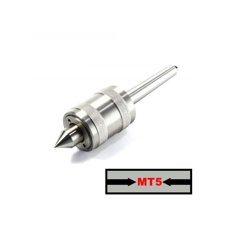 Contropunta rotante per tornio MT5 con attacco conico a morsa. Finitura in acciaio lucido