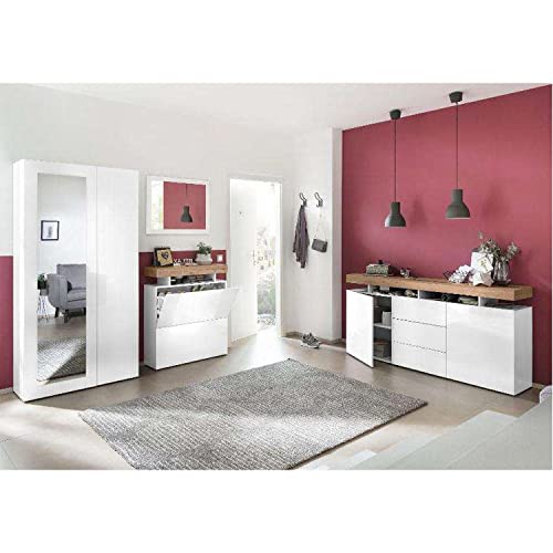 Web Convenienza Ponte Scarpiera 2 Ante Ribalta Bianco Laccato Lucido e Rovere Chiaro