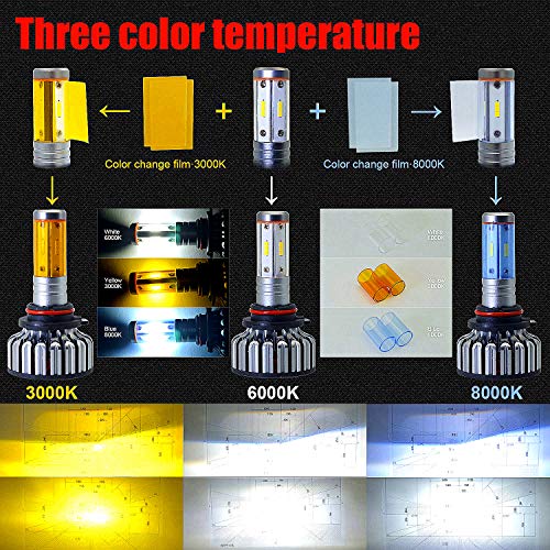 Kit di conversione 3 colori 9006 HB4 LED lampadine per fari 100 W 12000 LM 360 gradi, 4 lati LED CSP Chips-DIY 3000 K giallo/6000 K bianco/8000 K blu per