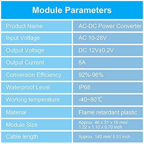 Convertitore di Alimentazione AC-DC AC 12V (10-28V) a DC 12V Convertitore Tensione Ridotto, Convertitore Buck Impermeabile IP68 Regolatore Modulo per Schermo Auto, Pompa Acqua, 5A (1 Pezzo)