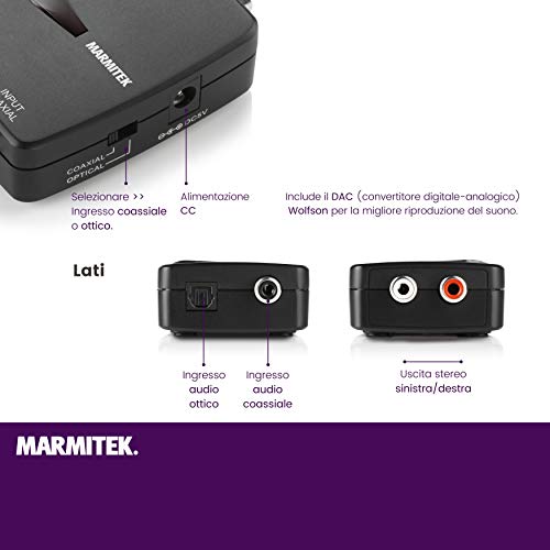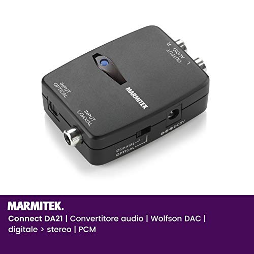 Convertitore Audio Digitale Analogico - Marmitek Connect DA21 - Convertitore Toslink o coassiale in RCA analogico - Tecnologia Wolfson DAC per la migliore riproduzione del suono - Frequenza 192 kHz