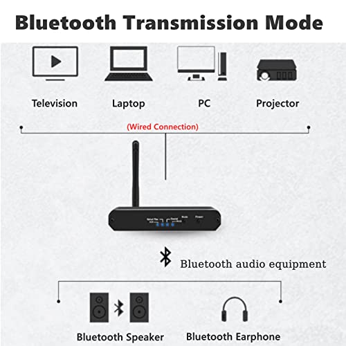 MODALITÀ DI TRASMISSIONE BLUETOOTH -- può convertire sorgenti audio cablate in segnali Bluetooth e trasmetterli a dispositivi Bluetooth (altoparlanti Bluetooth, auricolari Bluetooth). Può convertire TV, notebook, PC e proiettore in riproduzione audio wireless.