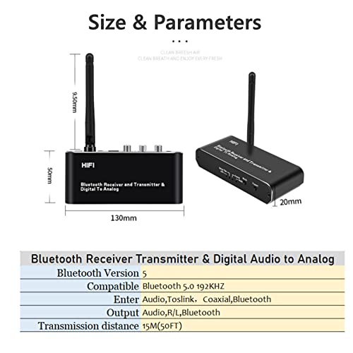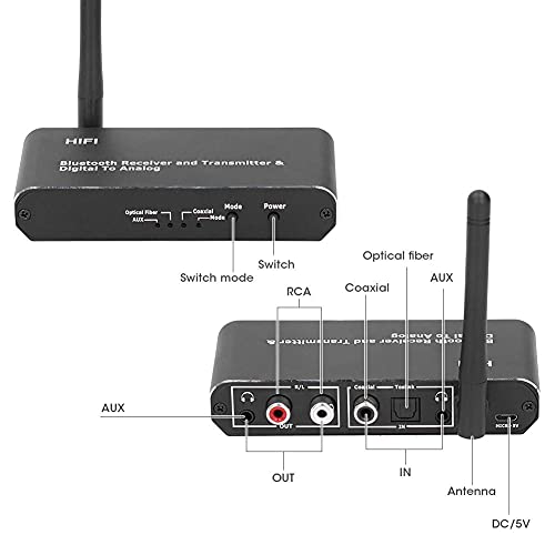 Convertitore Audio da Digitale ad analogico con Ricevitore Bluetooth 5.0, Fibra Ottica coassiale Digitale Bluetooth Toslink ad Adattatore Audio Stereo analogico L/R RCA da 3,5 mm/Bluetooth AVX