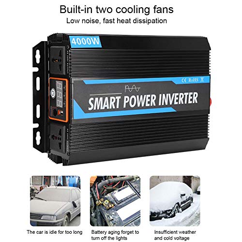 Convertitore di corrente per auto portatile, trasformatore di tensione inverter a onda sinusoidale pura da DC 12V a AC220V 4000W universale per auto