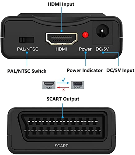 Convertitore da HDMI a SCART Adattatore, converte il segnale video e audio HDMI 1080P digitale in segnale analogico SCART CVBS per SKY HD Blu Ray DVD APPLE TV PS3, Supporta formati PAL/NTSC