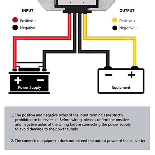 Efficiente e Protezione Multipla: Fino al 95% di efficienza di conversione della potenza, chip intelligente integrato, protezione da sovratensione, sovracorrente, cortocircuito e sovratemperatura e le prestazioni anti-interferenza sono buone. Il terminale di uscita non può essere collegato alla batteria.