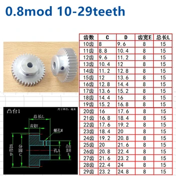 Convex step aluminum alloy 0.8 mod 12t 13t 14t 15t 16t 17t 18t 19t 20t 21t 22t 23t 24 25t 26t 27t 28t 29t teeth cylindrical gear