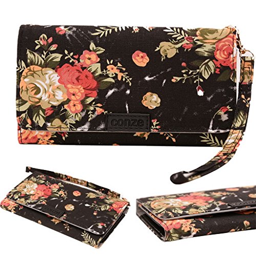 Conze moda piccola borsa porta cellulare con croce corpo cinghia per Wiko Ridge Fab 4 g/4 G multicolore Black + Flower small