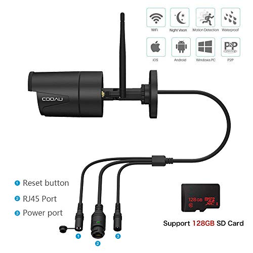 COOAU Telecamera IP Camera Wifi Wireless Videosorveglianza Esterno 720P HD Telecamera di Sicurezza con Cavo di Alimentazione 3M, Visione notturna di 20 m, chip Hisilicon avanzato, Motion detection