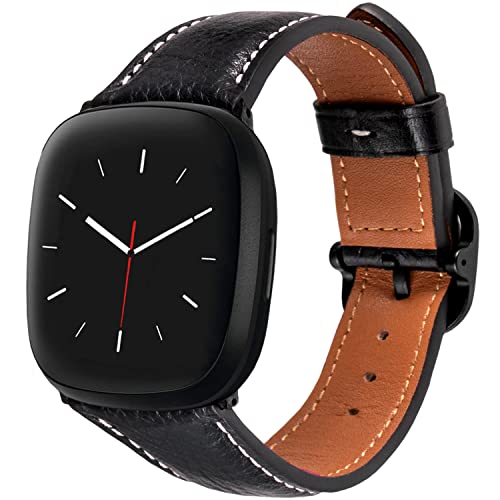 CooBES Cinturino in pelle compatibile con Fitbit Sense/Fitbit Versa 3, cinturino di ricambio morbido per uomo e donna, accessorio per smartwatch Versa 3/Versa Sense (nero)