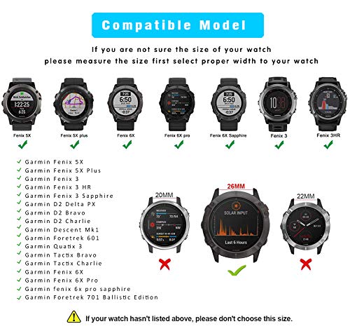 ①Compatibilità: ☞ Compatibile con Fenix 5X/ Fenix 5X Plus/Fenix 6X/Fenix 6X Pro/Fenix 6x Pro Saphir/Fenix 3/Fenix 3 HR/Fenix 3 Saphir/D2 Delta PX/D2 Bravo/D2 Charlie/Foretrek 601/Foretrek 701 Ballistic Edition. actix Brave o/Tactix Charlie/Descent Mk1/Quatix 3/quatix 6 x smartwatch a energia solare, Quick Easy Fit 26 mm, in vera pelle vintage, con fibbia in acciaio inox, per uomo e donna.