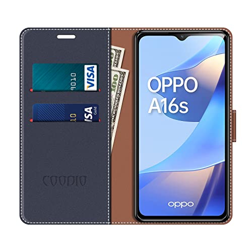COODIO Custodia per Oppo A54S, Custodia in Pelle Oppo A16S, Cover a Libro Oppo A54S Magnetica Portafoglio per Oppo A54S / A16S / A16 Cover, Blu Scuro/Rosso