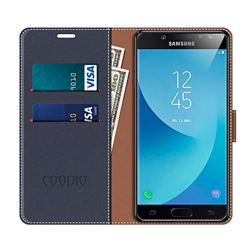 COODIO Custodia per Samsung Galaxy J3 2017, Custodia in Pelle Samsung Galaxy J3 2017, Cover a Libro Samsung J3 2017 Magnetica Portafoglio per Samsung J330 Galaxy J3 2017 Cover, Blu Scuro/Rosso