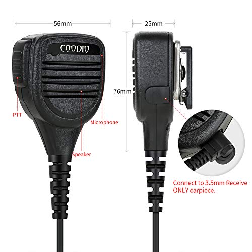 COODIO Motorola TLKR Radio 1-Pin Superiore Microfono a distanza Altoparlante [IP54 Impermeabile] e Presa 3,5mm Auricolare Per Motorola TLKR Ricetrasmittente PMR