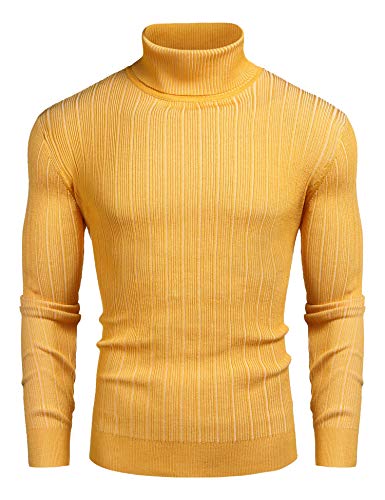 COOFANDY Maglione da uomo con collo alto, slim fit basic, a maniche lunghe, giallo., XL