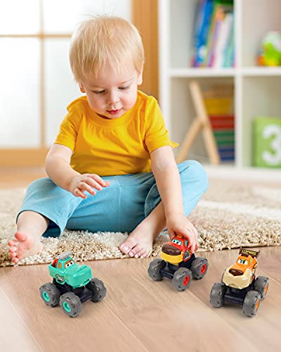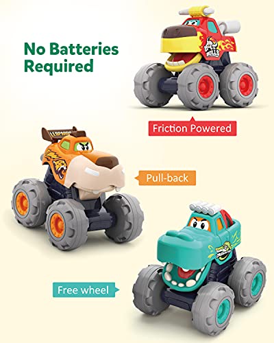 Coogam Auto alimentate ad attrito 3PCS, Push and Go Construction Monster Vehicle Animal Trucks Set di giocattoli, regalo per il compleanno Baby Shower Natale 123 anni Toddler Girls Boys