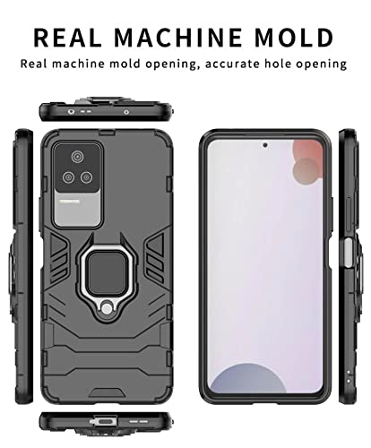 COOKD Cover per Xiaomi Poco F4, TPU/PC Dual Layer Hybrid Armor Custodia con Supporto Magnetico Auto, Silicone Cover con 360° Girevole Anello,Antiurto Protezione Shell, Nero