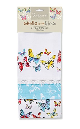 Cooksmart - Canovacci con Motivo di Farfalle, Cotone, Multicolore, Confezione di 3