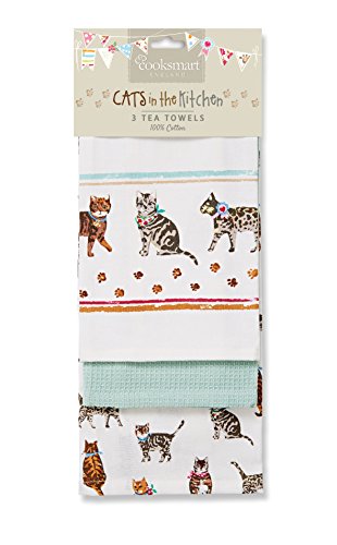 Cooksmart - Canovacci con Motivo di Gatti in parata, Multicolore, Confezione di 3