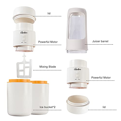 COOKUFO Frullatore Portatile,Frullatore Smoothie,Gelatiera(Con 2 200ml Coppe Gelato) 3 In 1,340ml Cucina Frullatore Elettrico,BPA Free,3000mAh,Ricarica USB,Facile da Pulire,Per Famiglie e Campeggio.