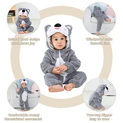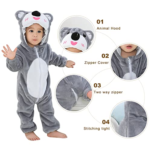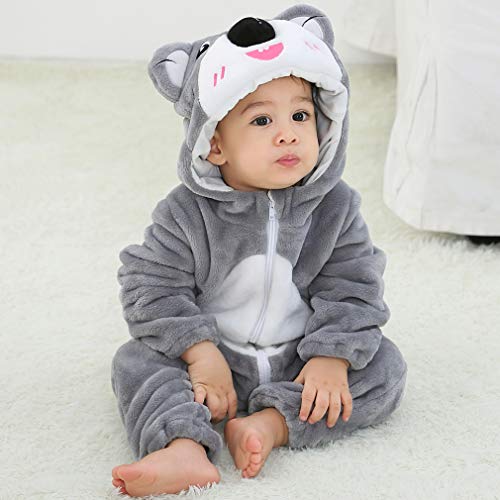 COOKY.D Tutine con cappuccio per neonati in flanella invernale pigiama 3-36 mesi, Koala., 24 mesi