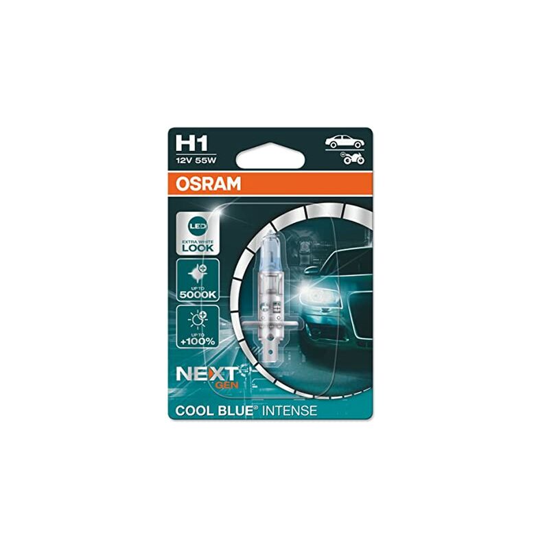 OSRAM COOL BLUE INTENSE H1, 100% più luminosa, fino a 5000K, lampada alogena, look LED, blister singolo (1 lampada) Single blisterStyle: H1;