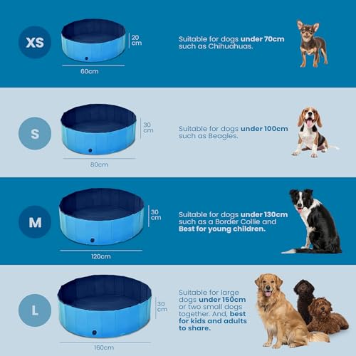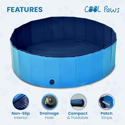 COOL PAWS Piscina pieghevole per cani, 160 x 130 cm, piscina pieghevole per cani e gatti, vasca da bagno per cani a tenuta stagna per interni ed esterni, piscina portatile per animali domestici