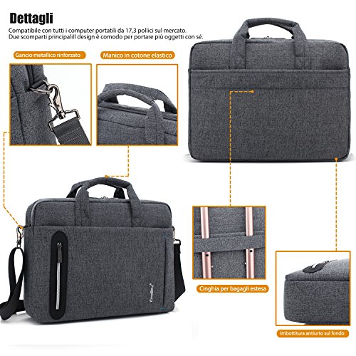 compatibile con computer portatili fino a 17,3 pollici. Più spazio per trasportare gli effetti personali d'uso quotidiano come libri, penne, portafoglio, iPad, chiavi, ecc.