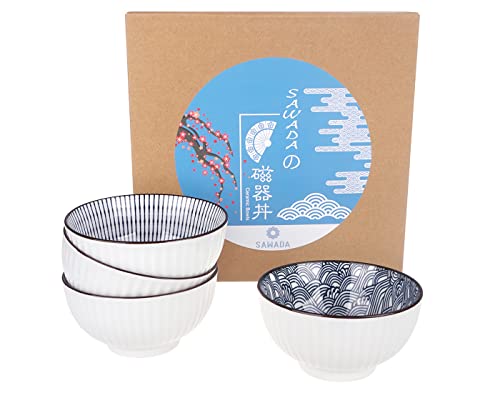 CoolChange Set di ciotole di riso giapponesi, dipinte a mano, 4 pezzi, ciotole da portata in ceramica, motivo asiatico, 12 cm