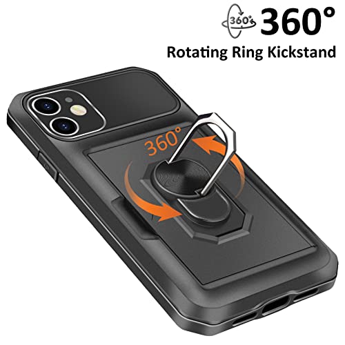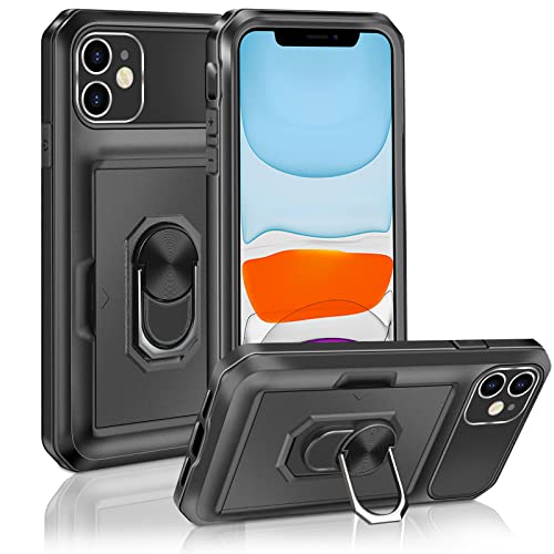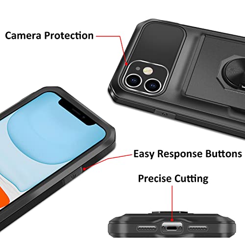 Coolden Cover per iPhone 11 Custodia Case Portafoglio con Porta Carte Supporto di Anello Cover Armor Case Militare Antiurto Bumper Cover Heavy Duty Protettiva Custodia Case per iPhone 11 Nero