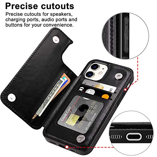 Coolden Cover per iPhone 11 Custodia Wallet Case a Portafoglio con Slot per Porta Carte Custodia per Pelle PU Flip Caso Cover Magnetica Chiusura Antiurto Protettiva Custodia Cover per iPhone 11 Nero