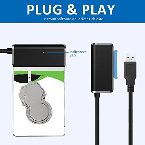 【SuperSpeed fino a 5 Gbps con UASP】: il cavo da HDD SSD a USB supporta il trasferimento di dati fino a 5 Gbps. RISPARMIA TEMPO CON UASP: questo adattatore da sata a usb supporta la tecnologia UASP, che è il 70% più veloce della tradizionale USB 3.0 e una riduzione dell'80% delle risorse del processore richieste, retrocompatibile con USB 2.0/1.1.