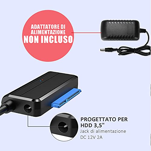 【ADATTATORE DI ALIMENTAZIONE NON INCLUSO】: Questo cavo connettore USB 3.0 a SATA è dotato di una porta DC-Jack per SATA da 3,5 ", MA NON È INCLUSO NELLA CONFEZIONE. Si prega di notare che l'alimentatore è necessario se è SATA 3,5 " L'HDD è collegato.