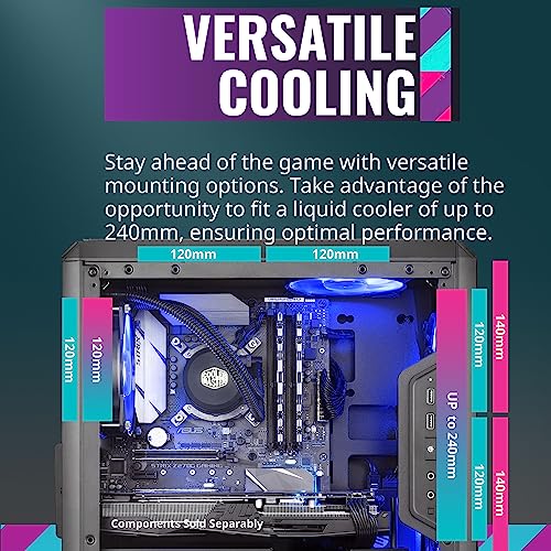 SPAZIO NEL INTERNO - Masterbox q300l supporta dissipatori cpu fino a un'altezza di 159mm, schede grafiche (gfx) fino a una lunghezza di 360mm e alimentatori (psu) lunghezza fino a 160 mm
