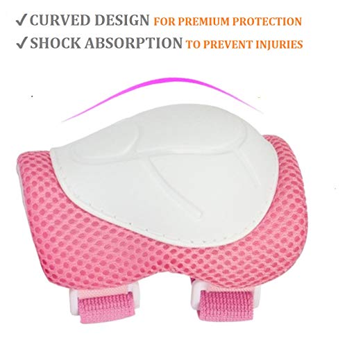 COOLGO Set di Protezioni per Bambini, 6 Pezzi Set di Ginocchiere per Protezioni Ginocchiere, Gomiti, Polsi Sicurezza Bambini Gear Pad di Protezione per Roller Skate Bici Skateboard Sport (Rosa)