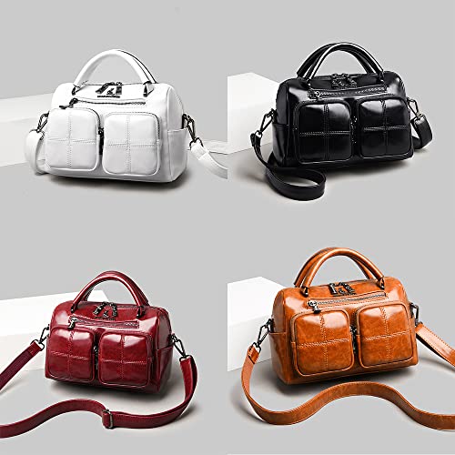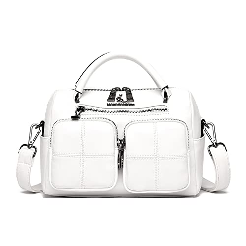 Coolives Borsa a mano con tracolla da Donna in Pelle Sintetica Vintage Piccola Borsa Bauletto Borsa a spalla Donna Retrò Sacchetto Moda Borse Manici Corti Borsetta Boston Borse Bianco