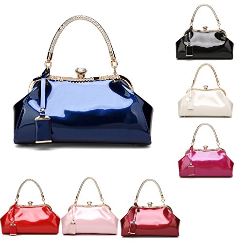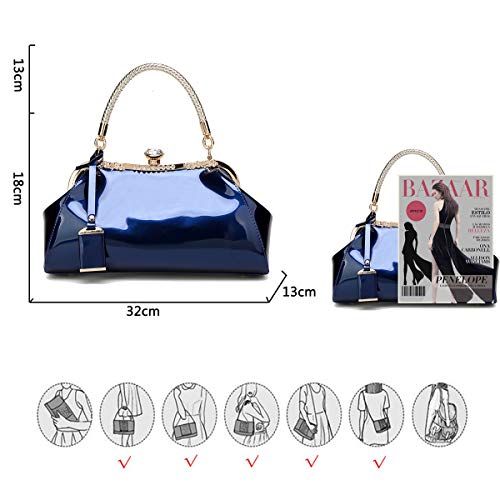 Coolives Borsa a mano con Tracolla Manico Intrecciata da Donna in Vernice PU per Signora Blu reale