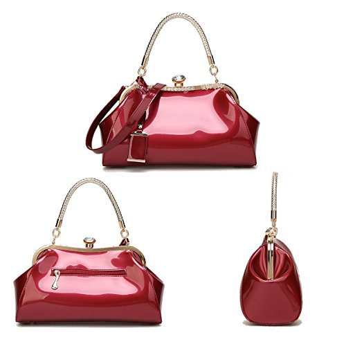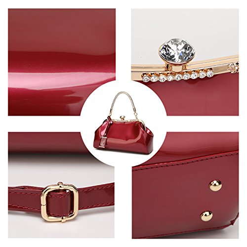 Materiale di alta qualità: Vernice PU, ha superficie lucida, impermeabile, a prova di umidità, a prova di polvere e facile da pulire. Il materiale interno è in poliestere. E la maniglia intrecciata è tessuto di morbida pelle PU, morbido e confortevole al tatto. L'ornamento è di strass.