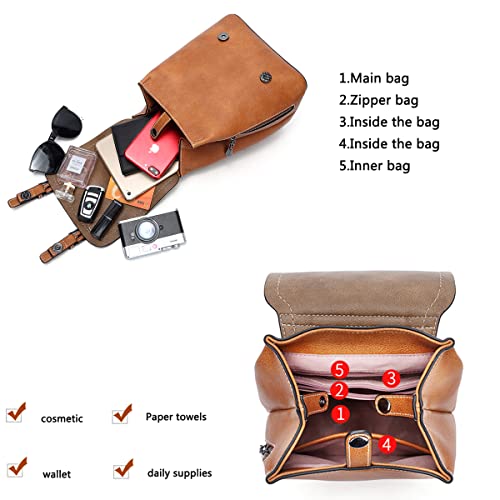 Coolives Mini Borsa a Zainetto con Patta da Donna Zaino Casual in Pelle PU per Ragazze Adolescenti Signora Colore caramello