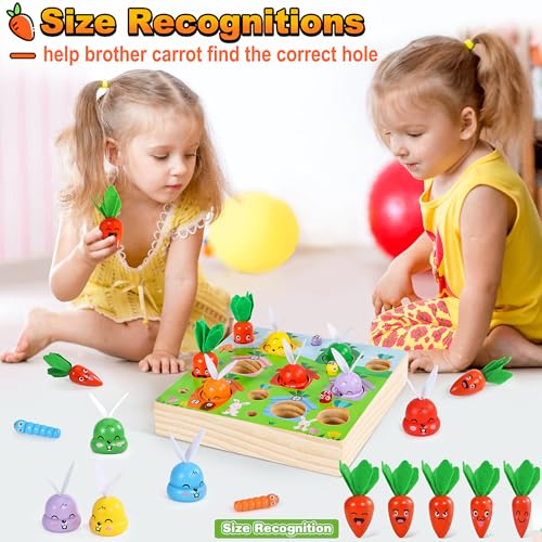 [Regalo carino per bambini] Le interessanti illustrazioni di scene su questa scatola di giocattoli in legno possono sviluppare l'immaginazione dei bambini. Le carote con espressioni diverse possono far percepire ai bambini emozioni diverse. Le forme dai colori vivaci aiutano a migliorare le capacità cognitive dei bambini e imparano giocando.